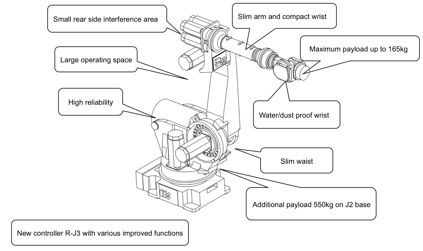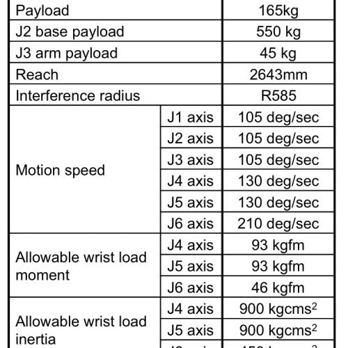 - Maximum payload at wrist is increased to 165kg(S-430iW).