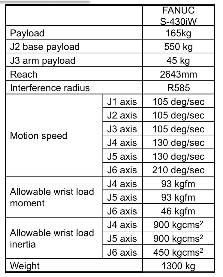 - Maximum Load of Robot: 165Kg.