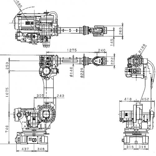 - Flip over motion enables operation to rear side. Upper side J3 arm offset for customer’s convenience.